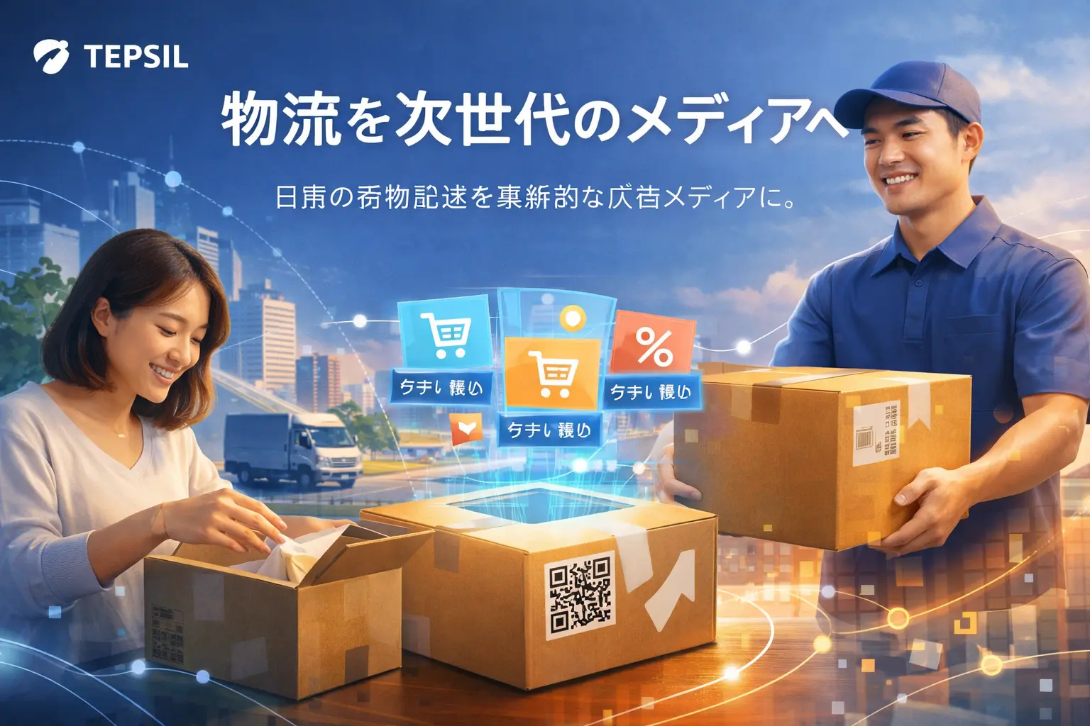 TEPSILは、物流を広告メディアとして活用します。 商品が届くその瞬間に、新たな情報との出会いを生み出します。